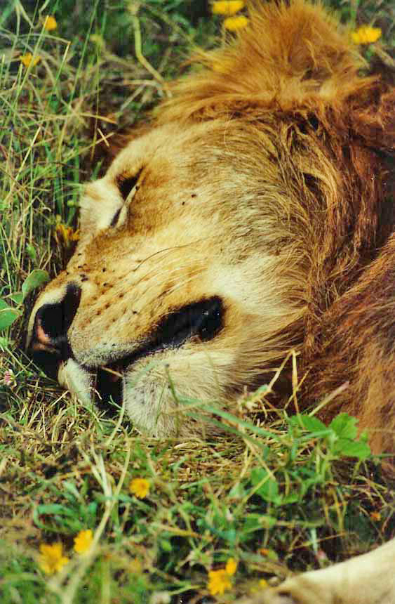 Lion Sleeping In Flowers
